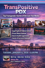 Join us this Tuesday, December 2nd at 6:00 p.m. for a new episode of Transpositive PDX on KBOO Community Radio. As always, we bring you conversations grounded in lived experience, community care, and the ongoing struggle for dignity and justice for all trans people. In ... Read more